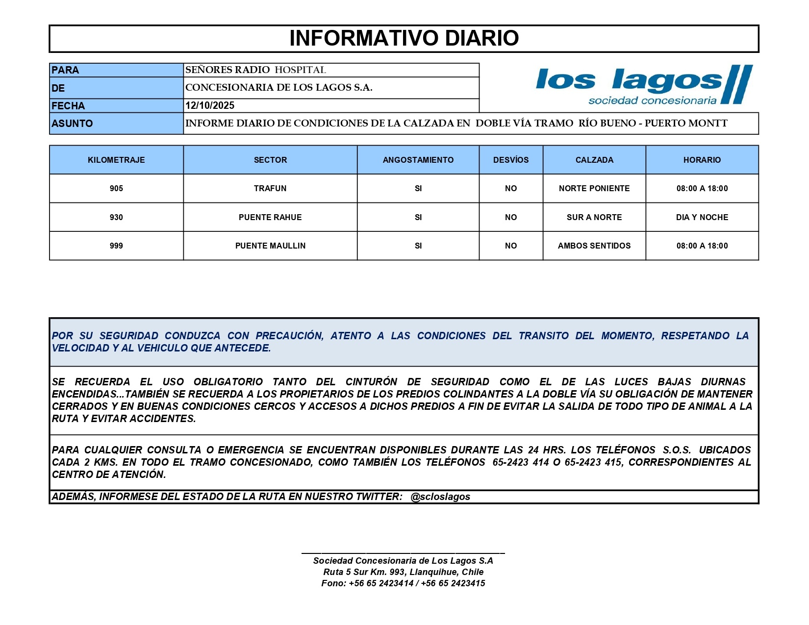 INFORME PREVENTIVO DE RUTAS 5 NORTE Y SUR